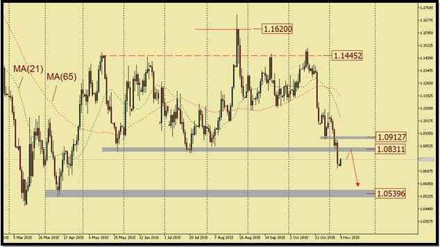 Пара eur/usd пробила область 2-х месячной поддержки 1.0820-1.0870. Текущая техническая картина указывает на продолжение медвежьей динамики с целевым ориентиром 1.0540-1.0560.